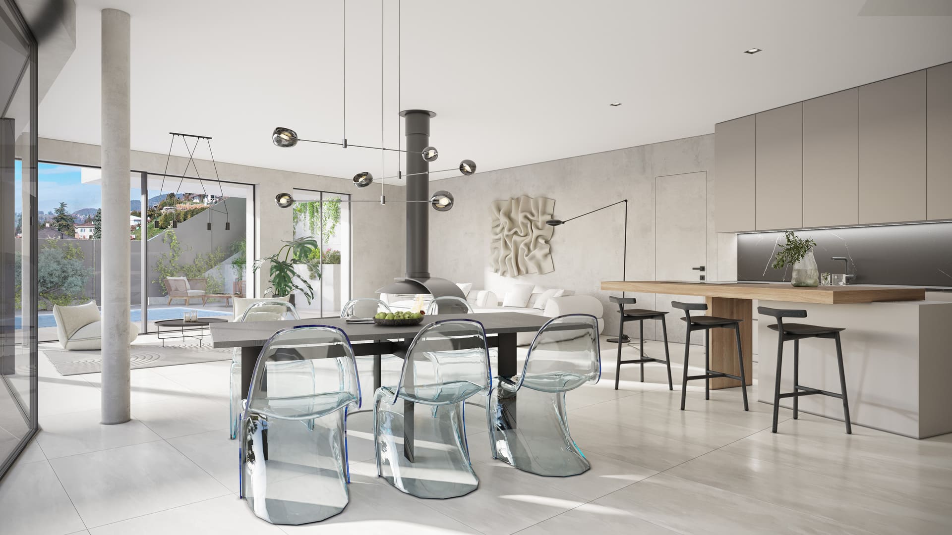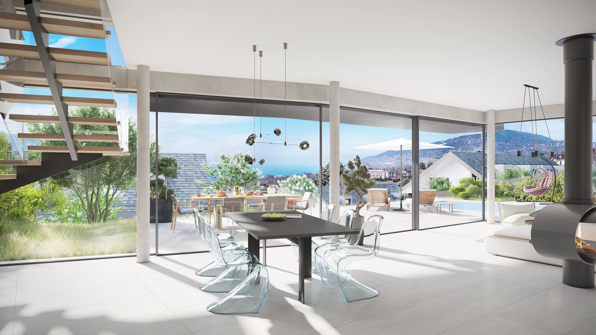 La villa A, encore disponible à la vente, d’une surface utile de 245 m2 dont 164 m2 habitables, avec son orientation sud-ouest, assure un ensoleillement optimal tout au long de la journée et une vue magnifique sur le lac et le Massif du Chablais. Sa part privative du terrain est de 460 m2 avec une superbe piscine en béton apparent de 9 x 3.5 m, entièrement automatique, une terrasse d'environ 90 m2 et un beau jardin, garantissent intimité et confort.